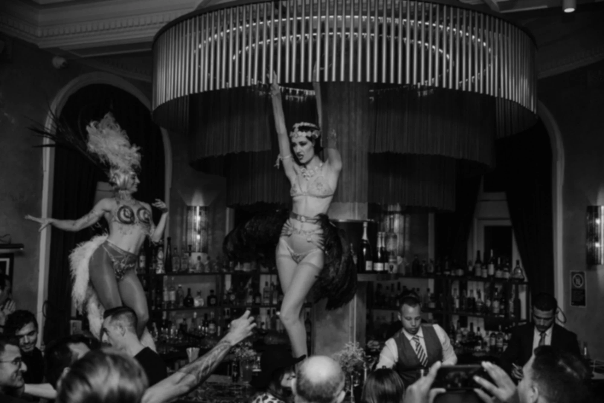 Our venue is beautifully decorated in the style of the Roaring Twenties, with Art Deco furnishings, chandeliers, and a speakeasy atmosphere. We have a large bar with a wide selection of cocktails, wines, and beers, as well as a dance floor where you can let loose and have some fun.