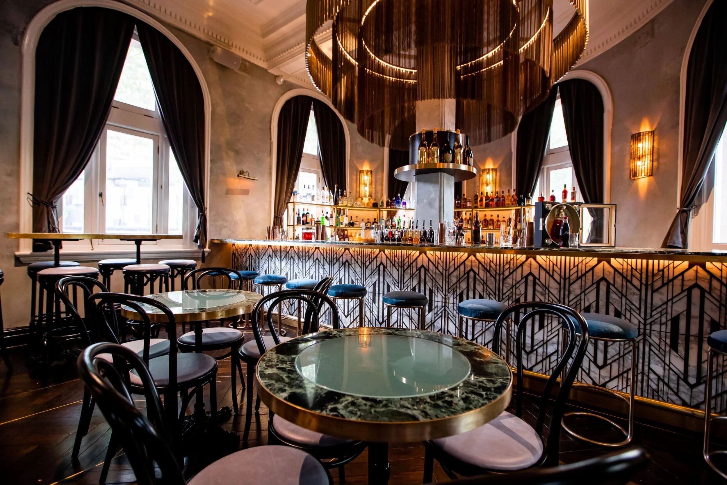 First impressions matter at The Cat's Meow, and The Vault is no exception. With its high ceilings, arched windows, and flowing velvet drapes, The Vault is a stunning space that will make a lasting impression on your guests. The brass and marble detailing around the bar adds a touch of elegance, while the lively atmosphere ensures that your guests will have a great time.